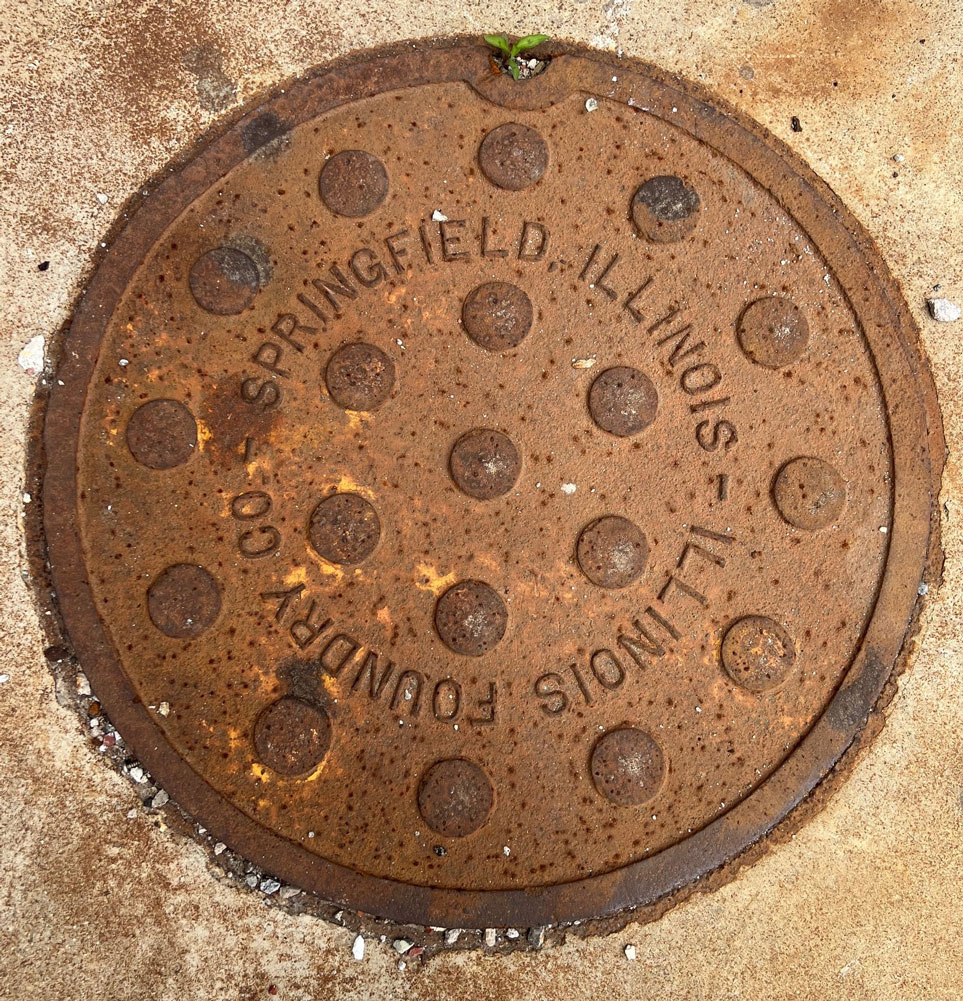 Illinois Foundry Company, located at 2735 South 11th Street in Springfield (1922-1967) supplied manhole covers and cast-iron hoppers for the plant. They were proud to advertise in the newspaper that they helped supply many items necessary for the construction of the plant. We found and documented one of these manhole covers at the plant late last year. It was fun to see Springfield Illinois stamped on the cover!