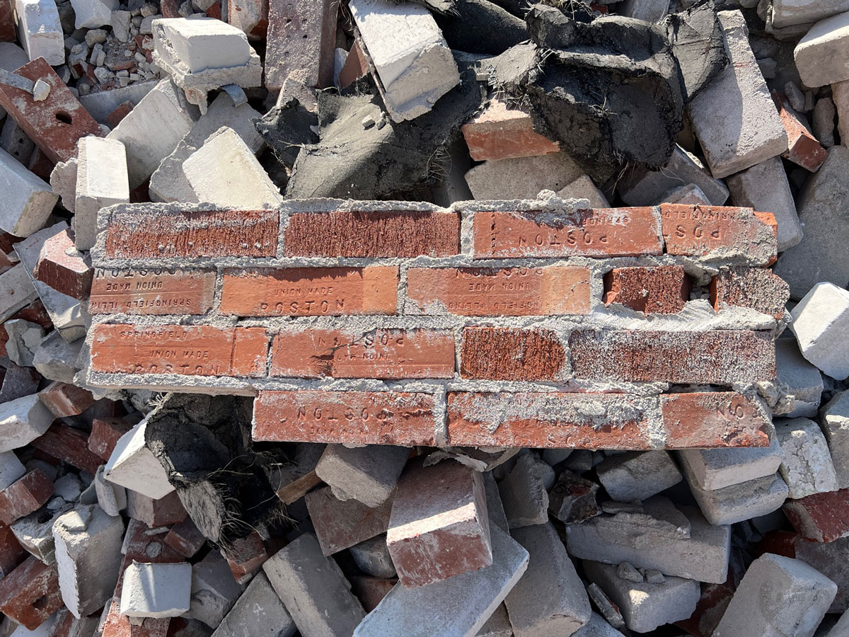 We have recycled over 650 tons of brick at the site since we began demolition activities in 2023. About 500 of these bricks from Warehouse #4 have been engraved and sold as keepsakes.